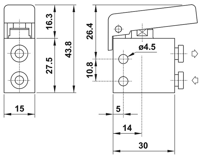 3/2 NO mechanický ventil pre fi4mm hadicu, bočné, pákový zelená MG 314 G UL