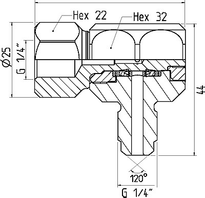 PN-001-19 950 0022Vsuvka M 1/4" 120° - 9/16" -18 UNF 60° 3000 bar 19 950 0022