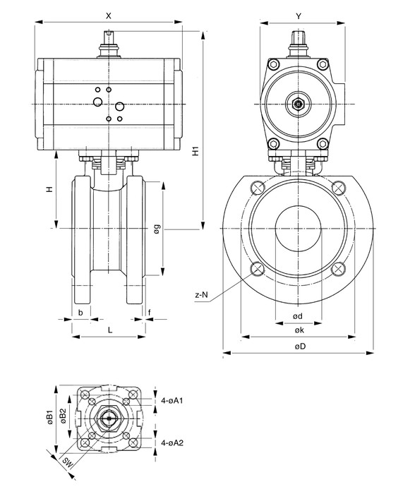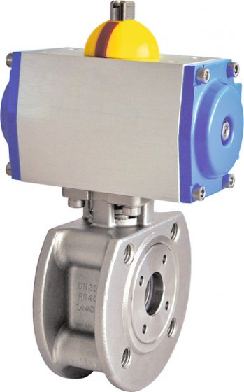 - Pneumaticky ovládané prírubové guľové kohúty