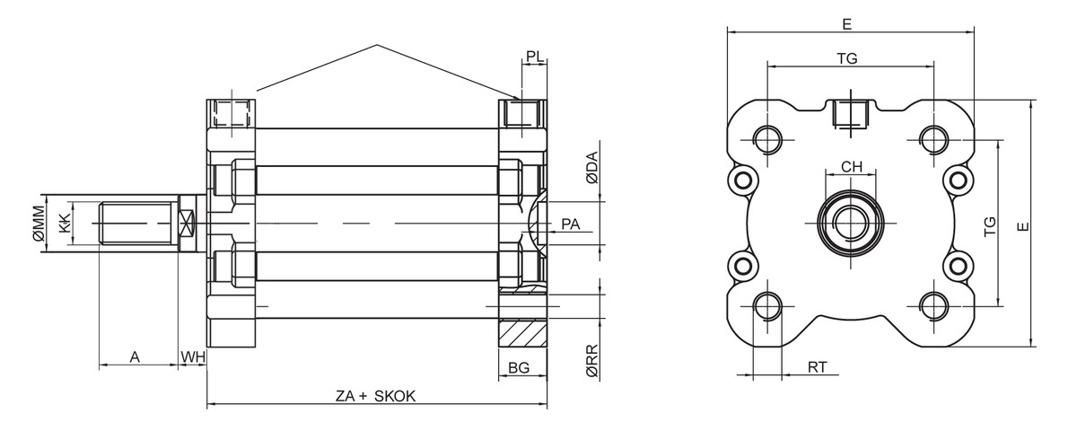 PN-001-NSKN080.0160MKompaktný valec ISO 21287 AISI 316L, vonkajší závit NSKN080.0160M