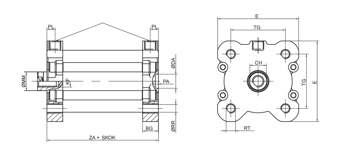 PN-001-NSKN025.0025Kompaktný valec ISO 21287 nerezová oceľ AISI 316L NSKN025.0025