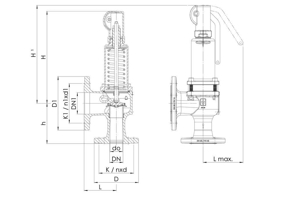 PN-001-852W.40-21Poistný ventil prírubový na vodu s pákou DN40 Potw = 21bar 852W.40-21