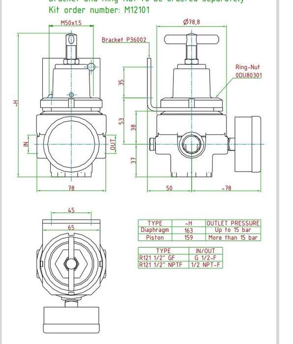 Reduktor tlaku G1 / 2w max 50bar 3-30 bar T R121 3-30 T