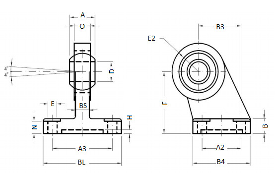 Šikmé ucho s guľovým kĺbom. D50, nerezová oceľ AISI316 XASCS-SN-IN / 050