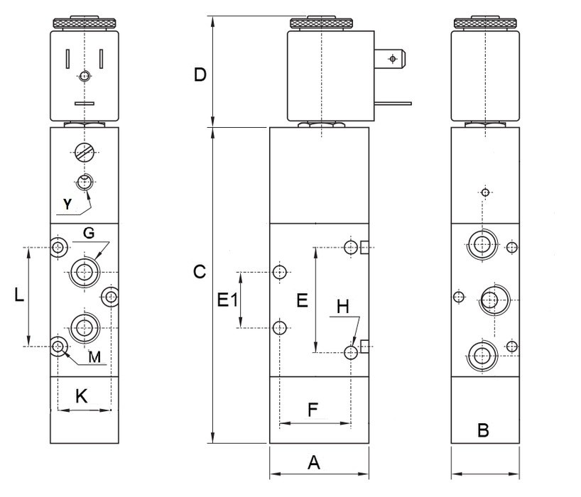 Solenoidový ventil 5/2 s pilotom G1/4, vratná pružina 522 ME AS