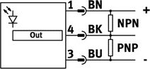 | Funkcia spínacieho prvku | NPN, prepínanie svetla, PNP, prepínanie tmy |