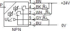 Elektrické pripojenie5-kolíkový, Podľa EN 60947-5-2, Okrúhle prevedenie, Zástrčka, M12x1