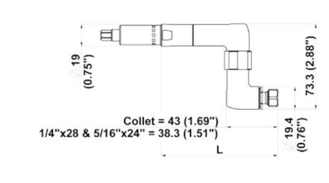 Uhlová hlava 360 stupňov L = 96,8 mm. 1/4 "x28 vreteno 2050503423