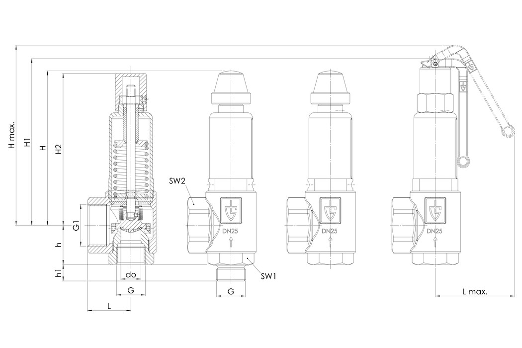 PN-001-851P.15/25-8,0Uhlový poistný ventil pre paru DN15 G1 / 2-G1 Potw = 8,0 bar 851P.15 / 25-8,0