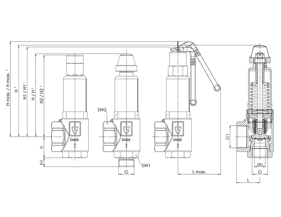 PN-001-451P.32/50-25Uhlový poistný ventil pre paru DN32 G11/4-G2 Potw = 25bar 451P.32/50-25