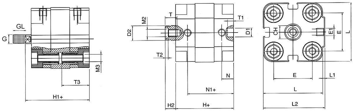 PN-001-QF100.0015MKompaktný valec UNITOP D100x0015 vonkajší závit QF100.0015M