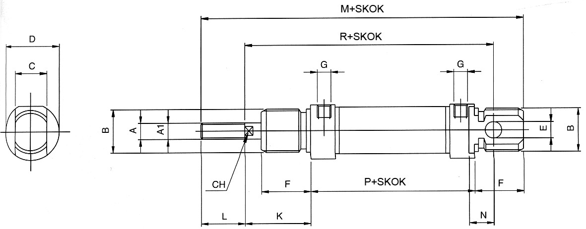 PN-001-ANM025.1000Valec ISO6432 D025x1000 s nastaviteľným odpružením ANM025.1000