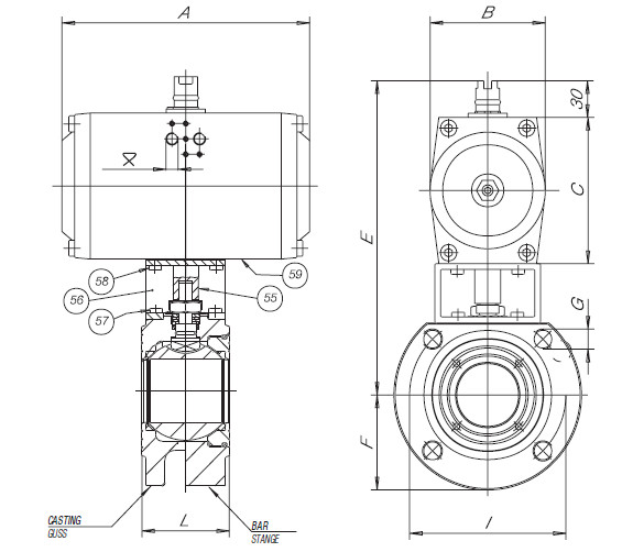- Pneumaticky ovládané prírubové guľové kohúty