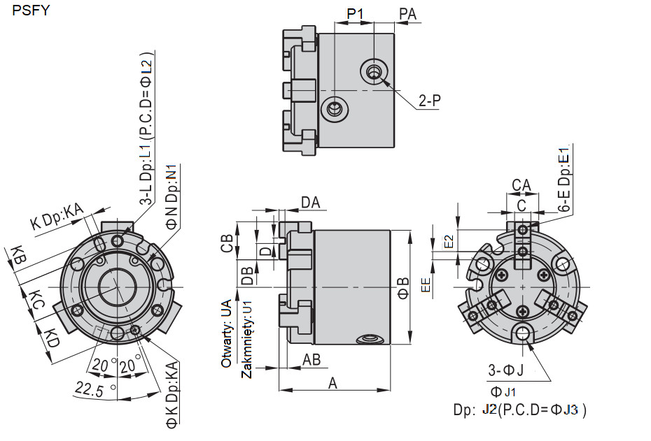 Viacčeľusťové chápadlá radu PSFY D32 PSFY032