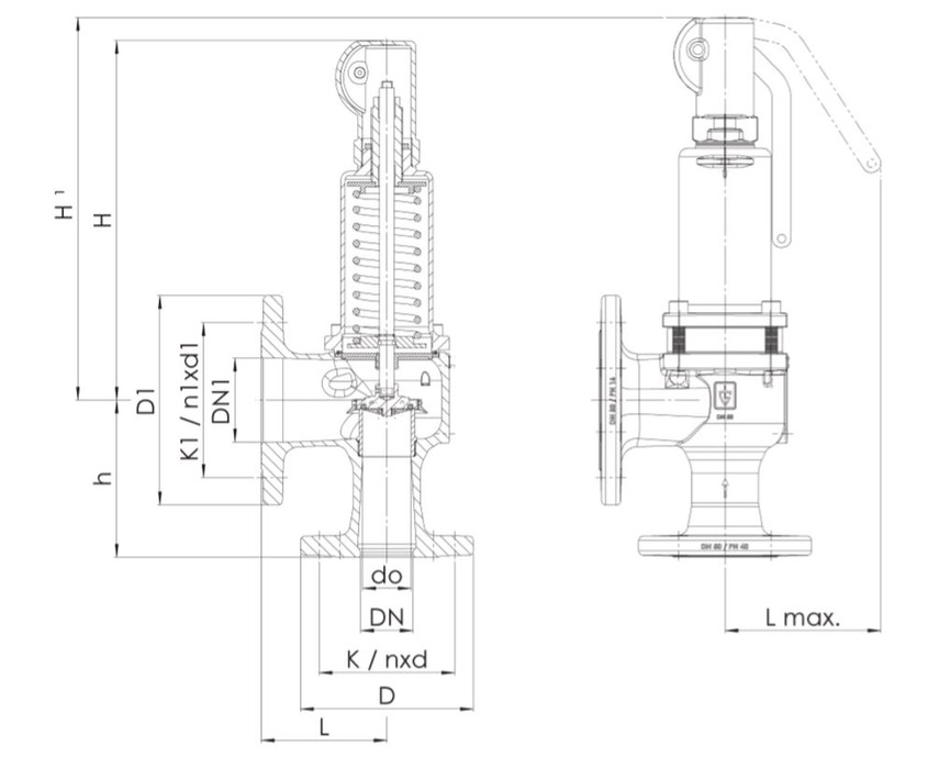 PN-001-352W.40-14Poistný ventil prírubový na vodu s pákou DN40 Potw = 14bar 352W.40-14