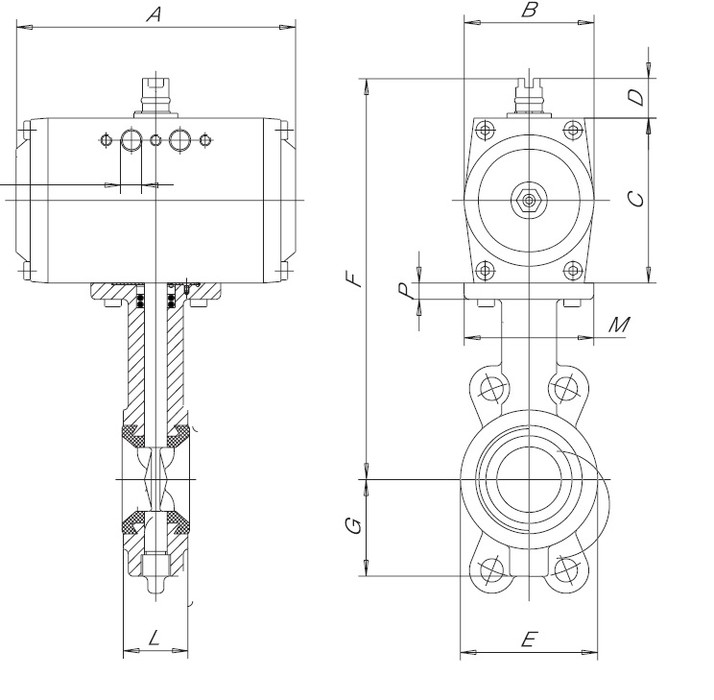 Vrátane klapiek ROCK DN65 CF8M EPDM GG25 s pneumatickým pohonom. SA ROCK-SA-065-1-AB