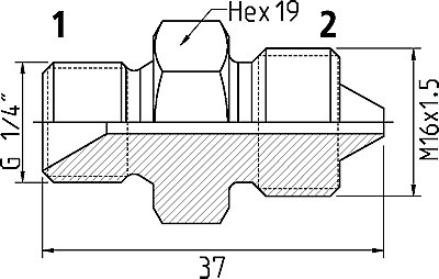 PopisVonkajší závit Pripojenie 1 s 60° vnútorným kužeľom, pripojenie 2 s 60° vonkajším kužeľom