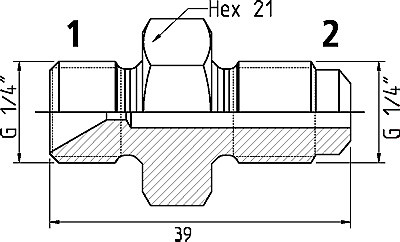 PopisPripojenie 1 vonkajší závit s 60 ° vnútorným kužeľom. Pripojenie 2 s 120° vonkajším kužeľom. (Maximálny pracovný tlak s gumovým tesnením 100 MPa)
