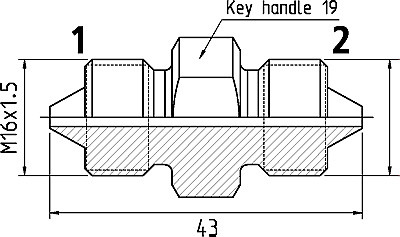 PopisVonkajší závit Prípojka 1 s vonkajším kužeľom 60°, pripojenie 2 s vonkajším kužeľom 60°