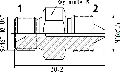 PN-001-19 950 1613Vsuvka vonkajší závit 9/16"-18 vonkajší 60° vonkajší závit M16x1,5 vonkajší 60° 4000 bar 19 950 1613