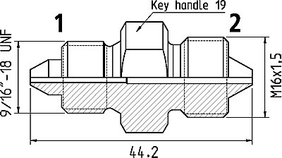 PN-001-19 950 1613Vsuvka vonkajší závit 9/16"-18 vonkajší 60° vonkajší závit M16x1,5 vonkajší 60° 4000 bar 19 950 1613